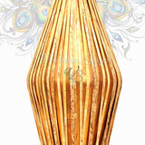 This brass Mridanga drum is made in India. The heads and straps are crafted from ahimsa (non-violent) leather using traditional methods. The classic design and craftsmanship of this Mridanga give it a unique sound—producing a high-pitched bell-like tone on the smaller side and a deep bass tone on the larger side.