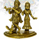 Brass Radha Krishna Idol on oval platform base