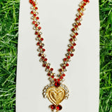 Delicate Stone Chain Mala with Golden Heart Pendant