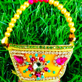 Elegant yellow zardozi purse