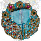 Enhance the divine look of your 2 No. Laddu Gopal Ji and 2 No. Radha Rani (Baby) with this elegant Laddu Gopal Dress featuring 5 Flowers and Pearl Zari Design. Crafted with exquisite pearl zari work and floral patterns, this dress offers a perfect blend of tradition and grace, ideal for puja ceremonies and festive occasions.