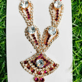 The Quarter Shape Pendant with Chain Stone Mala is a unique and elegant piece designed to enhance your deity's shringar. Length of the mala is 7 cm. This mala features a chain adorned with beautiful stones, leading to a distinctive quarter-shaped pendant. The harmonious blend of shimmering stones and the striking pendant creates an aura of divine beauty and grace. Perfect for daily worship or special occasions, this mala adds a touch of refined elegance to your deity's adornment, enriching the spiritual ambiance of your sacred space.