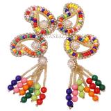 This exquisite rainbow beads paisley motif head tiara is designed for small deities, adding a vibrant and majestic touch to their divine shringar. Crafted with colorful beads in a traditional paisley design, it brings a joyful and elegant charm to your beloved deities.