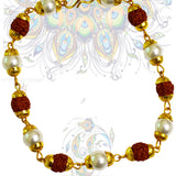 Rudraksha and pearl with metal caps bracelet