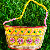 Special zardozi purse in Yellow with pink design