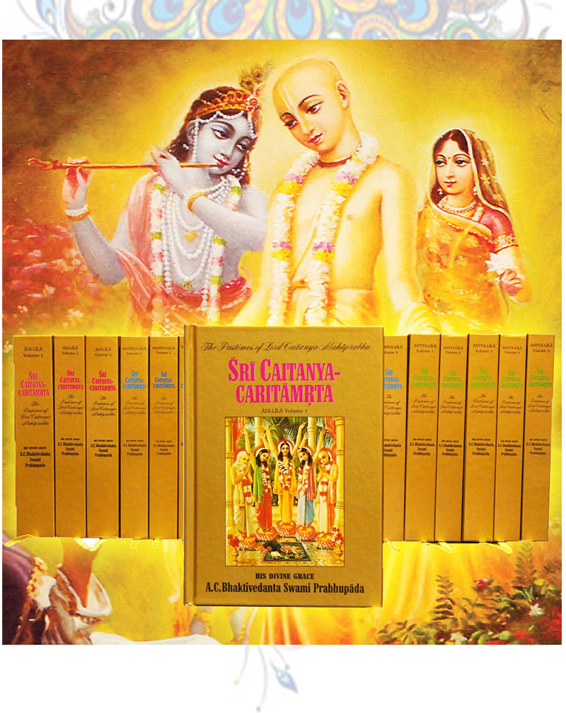Sri Caitanya-caritamrita is the main work on the life and teachings of Sri Caitanya Mahaprabhu, considered the incarnation of Krishna, who appeared in India five hundred years ago. Lord Caitanya introduced the chanting of the holy names of God as the prescribed method of God-realization for our time. He began what is today called the Hare Krishna movement, since the movement’s founder, Srila Prabhupada, comes in the Caitanya line of spiritual masters.
